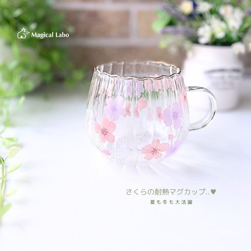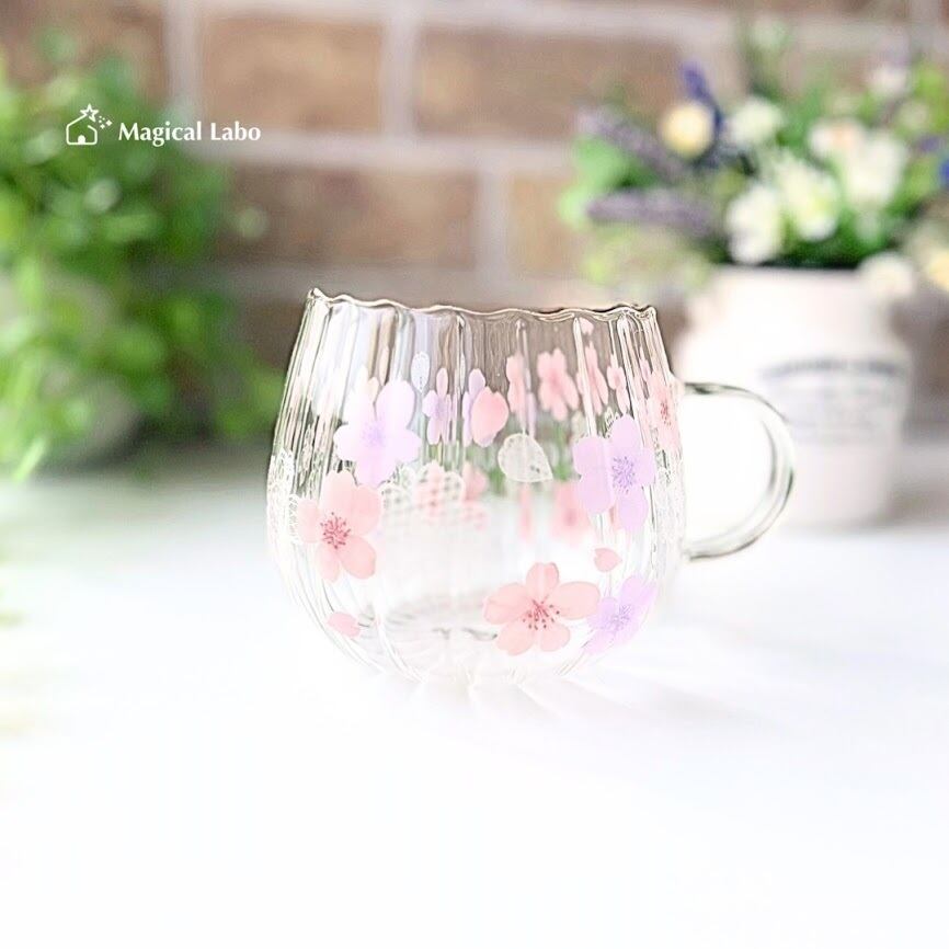 【名入れ可】さくら柄の耐熱ガラスマグカップ♪