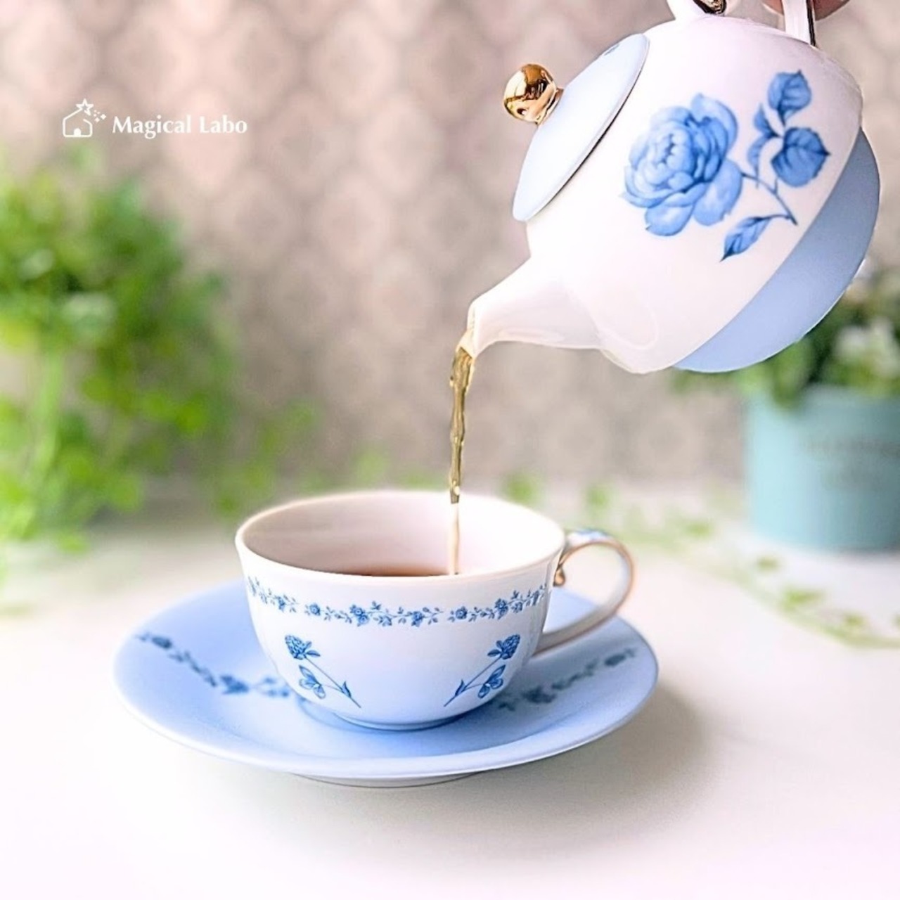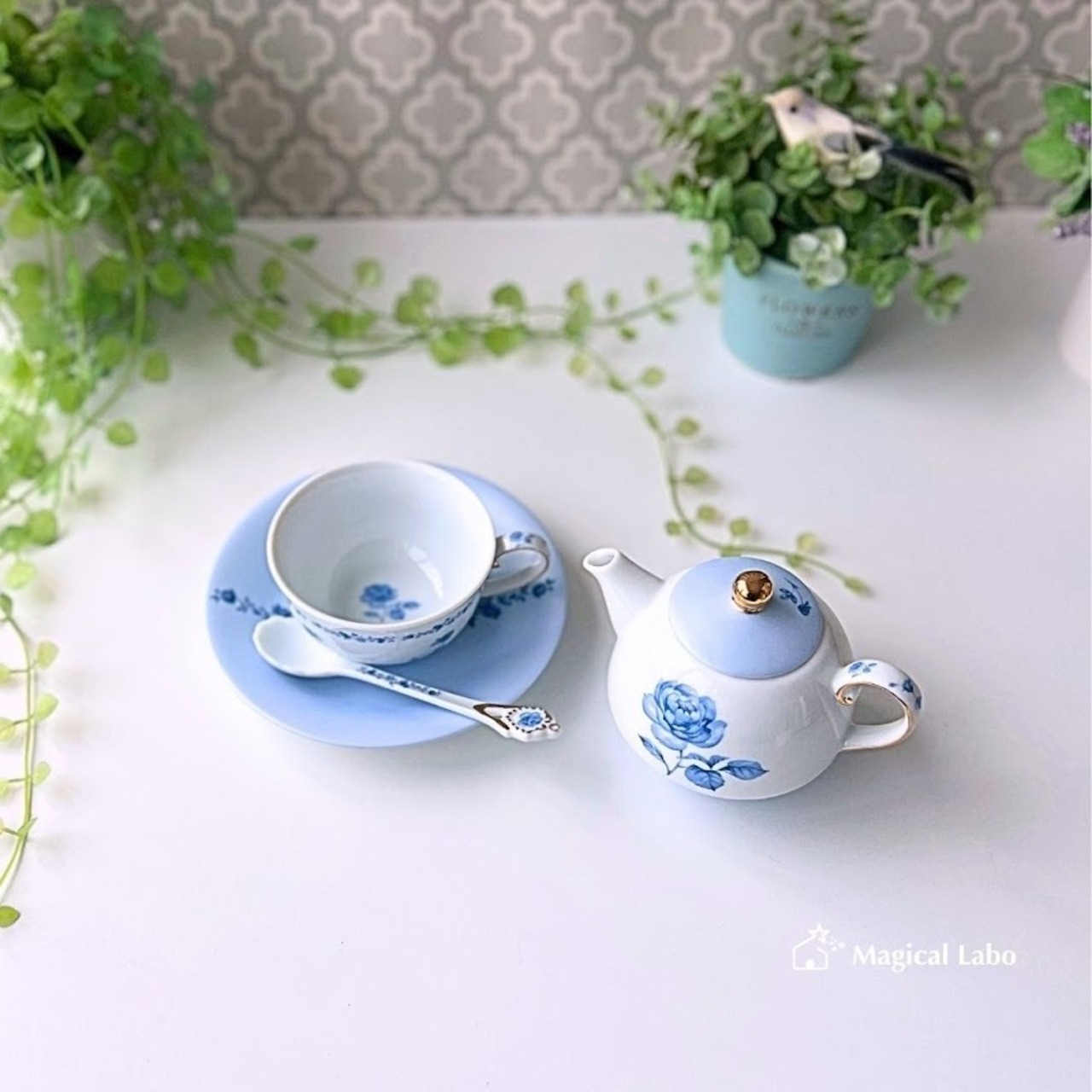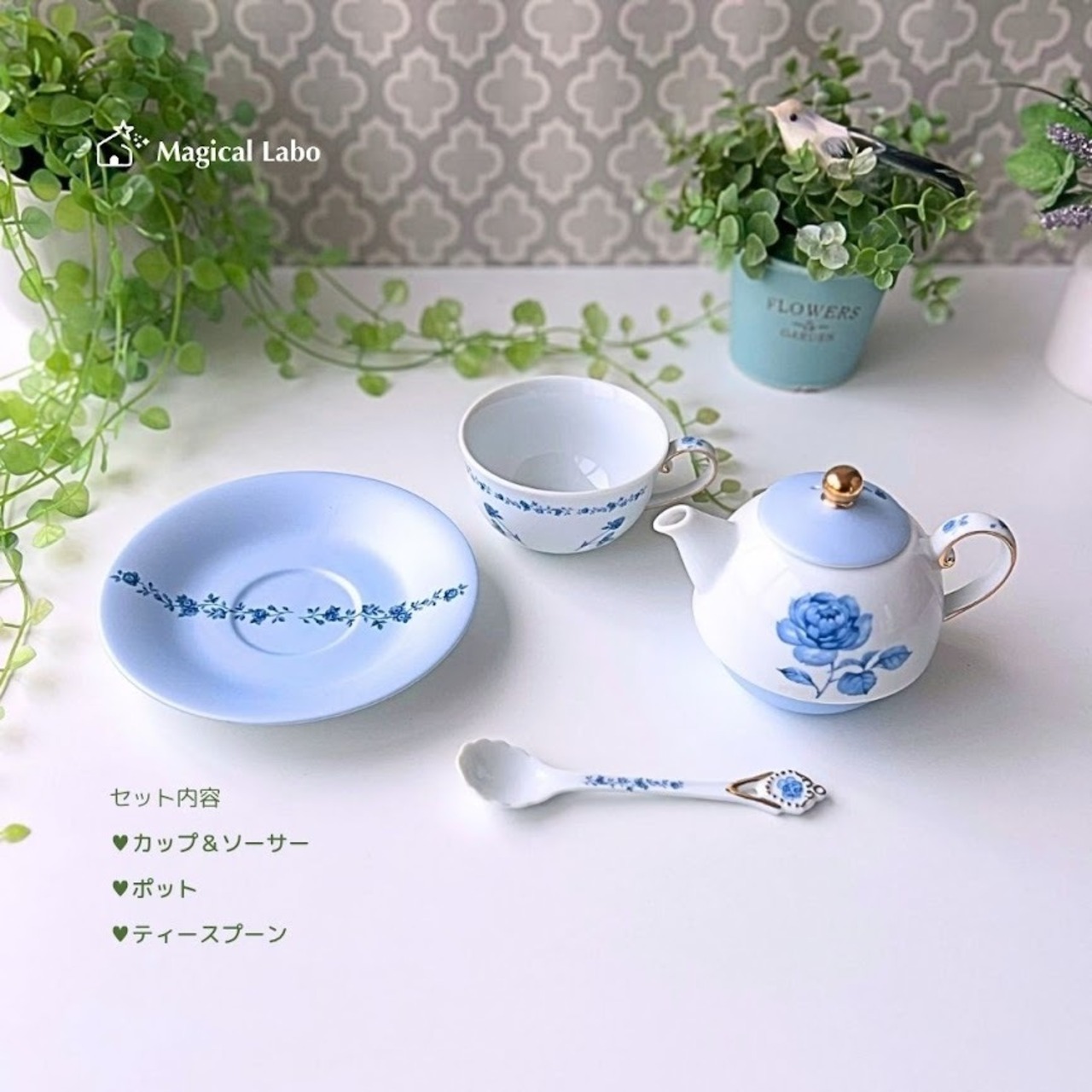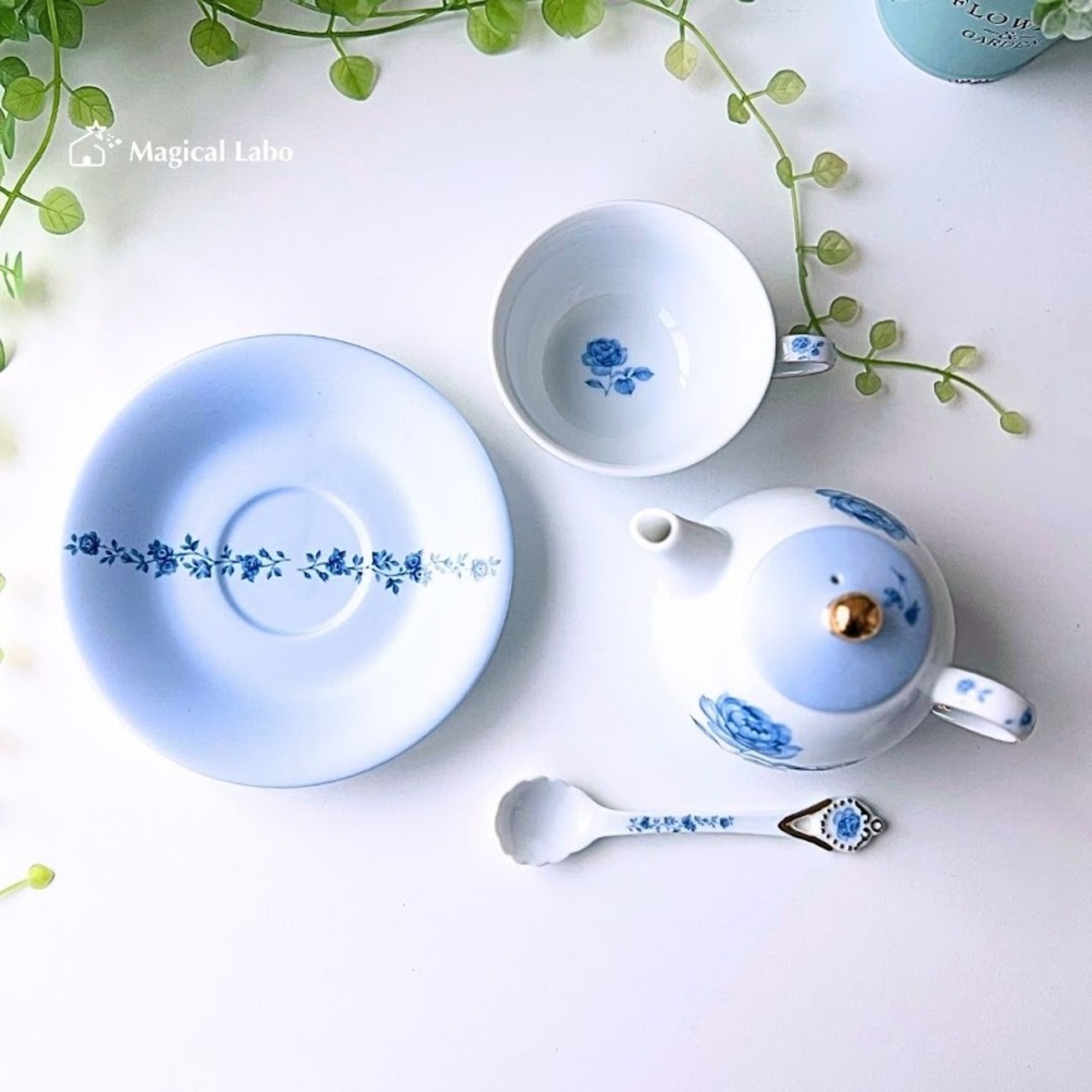 2025年新作♪ 上品で高級感のある清楚ブルーローズのティーフォーワン*ティーセット