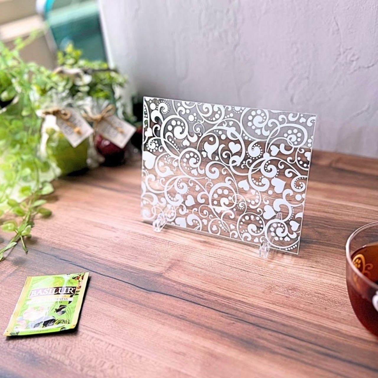 カップと同柄のガラスプレートは