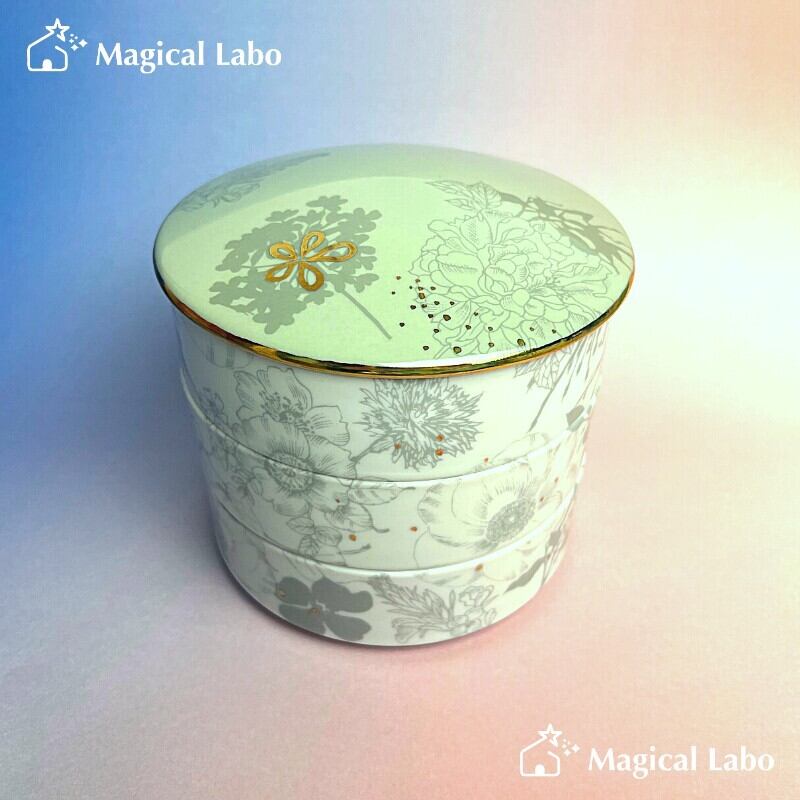 シックフラワーとゴールドの三段重(お重/ラウンド)★和食器*お節*白磁*お正月*節句*食洗器OK