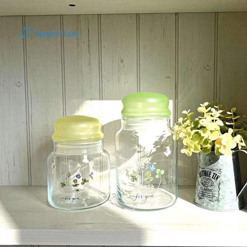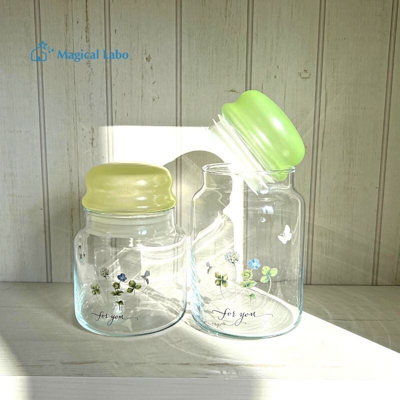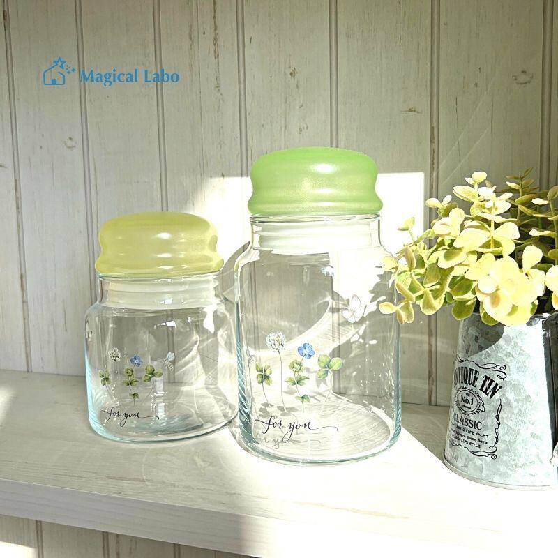 人気の北欧♪春色クローバー柄の保存容器大小2種★保存瓶*密封容器*ガラス瓶*キャンディポット