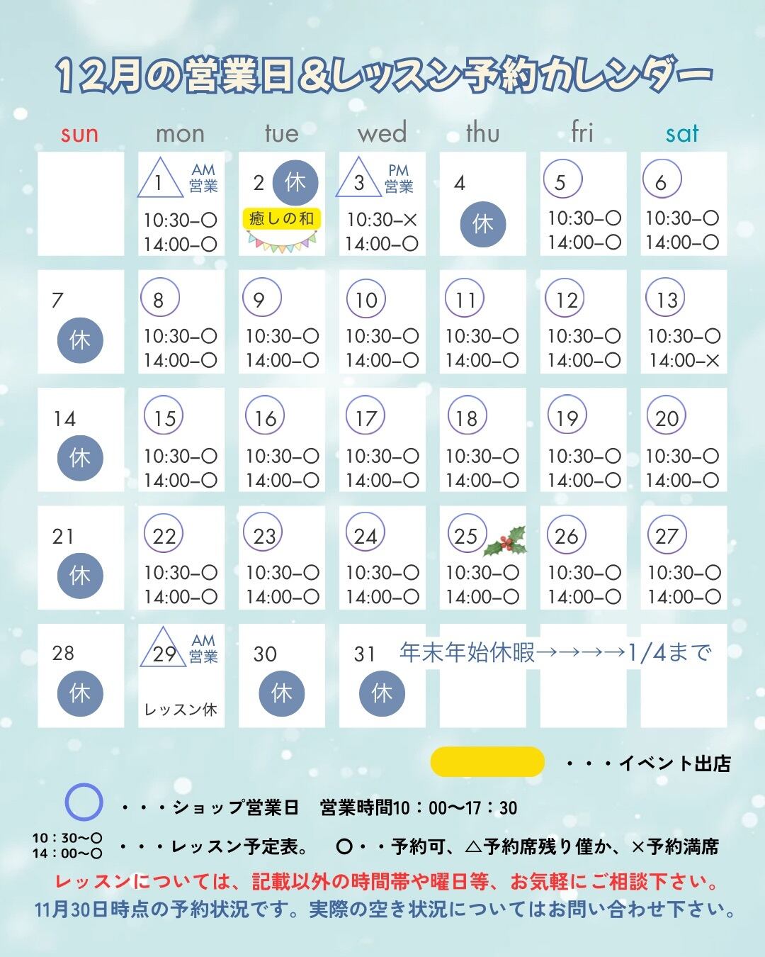 実店舗営業カレンダー&ハンドメイドレッスン予約表
